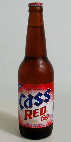 Korean Beer Review: Cass Red – The Korean Beer Review returns for its second episode with a look at Cass Red (this link is just here for form—it’s a flash page, so I can’t link directly to the product, and it’s in Korean, but I’m going to translate the hype anyway, so no big loss). I purchased a 500 ml bottle the weekend before last, and it sat in the refrigerator as I tried to figure out what to do with it. Half a liter of beer is nothing to sneeze at, especially when it is high-alcohol beer. Fortunately for the Korean Beer Review, Hyunjin felt like having a beer the other night, and she wasn’t in the mood for Guinness. The Cass Red was the only other beer in the refrigerator, so we split it (more or less—I had 300 ml, and she had 200 ml).