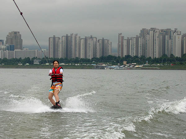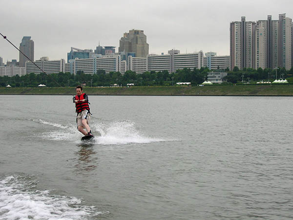 Once more into the wake – As I wrote in my last entry, two weeks ago we went wakeboarding on the Han River. We had a great time, but Hyunjin wasn’t up for very long, so I knew it wouldn’t be long before she wanted to try again. In fact, she wanted to go last weekend, but the rainy season finally decided to live up to its name and it poured. There was also the matter of a small injury I sustained during our first outing.