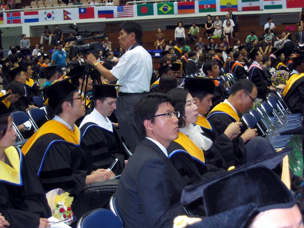 It didn’t help that the entire ceremony was really aimed at the undergrads. In retrospect it makes sense, since they made up the bulk of the students present, but it had not occurred to me before. All of the speeches, though, spoke of how the students would now be entering a world that was much harsher than the university environment, etc. I just sat there thinking, “Tell me about it. I’ve been living in that world for the past decade and a half.” To make matters worse, many of the speeches focused on the (Korean) students’ duty to their nation and other such nationalistic rhetoric. So I was doubly left out of the proceedings.