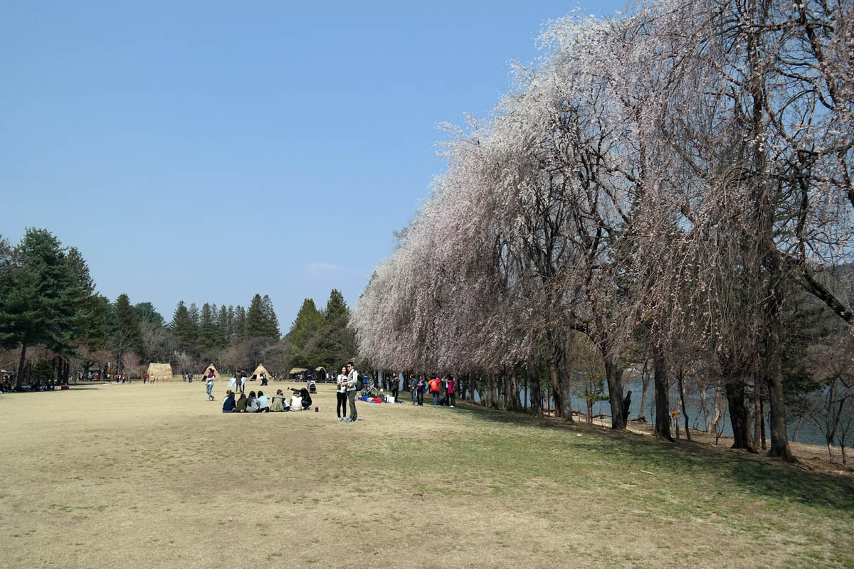 As I mentioned above, the island itself is not too large. We wandered around for a while, walking the island from one end to the other. It was quite windy at the water’s edge, but this grassy area was fairly sheltered and had the advantage of blossoming cherry trees along one edge. A lot of people were out taking photos, including quite a few girls who had dressed to the nines apparently for the express purpose of having their photographs taken against the backdrop of the cherry trees. Seeing them stumble around the island in their dresses and stiletto heels was pretty amusing.