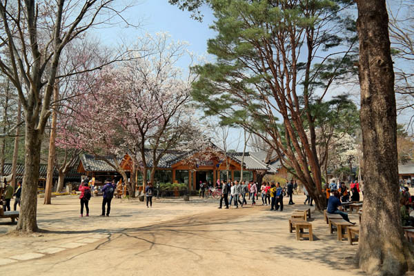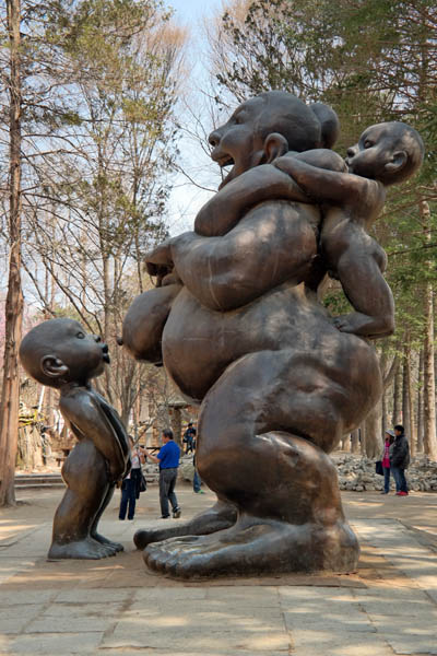 After wandering around for a while, we felt like we had exhausted all of our options on the island, and we headed for the ferry back to shore. Nami Island is nice, and I guess if you’re a young couple looking to have a romantic (if not exactly private) date, this would be a good place to go. But for an old (seasoned?) couple like us, the island didn’t hold that much charm. You can rent bicycles and cycle around the island—this is apparently something that the Winter Sonata protagonists had done—but the paths looked rather crowded with cyclists and pedestrians. As we were trying to figure out if we should try to find something else to do on the island, seeing as how we had driven all the way there from Seoul (it’s about an hour and a half by car), HJ confessed that she had really just wanted to sail down the zip wire. That settled it, and we decided to head back to Seoul.