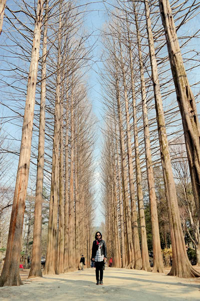 One of the many attractions on the island is the “Metasequoia Road,” a short path bounded by metasequoias on either side. I think it would have looked prettier had the trees had leaves, but it was still pretty impressive.