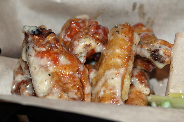 We didn’t have to wait too long for our wings, which gave us something tasty to gnosh on while we waited for the pies to bake. Although these were not the main attraction, I was still quite impressed. I was expecting them to be quite on the greasy side without the heat to cut through all the fat, but they turned out to be very good. We polished them off in short order.