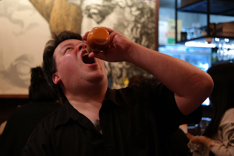When we finished eating, we met a very tired-looking Joe. He was nice enough to chat with us for a bit, and I did my usual cheesy thing of posing for a photo with the owner. I’ve actually known Joe for a while, even if our paths haven’t crossed all that much—a number of years ago I did a podcast with him. I’m happy to know him now as a restauranteur and a fine cook to boot.