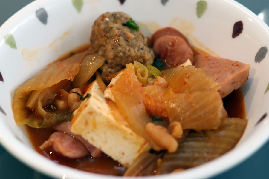 Just in case you did not read the article linked above, budae jjigae is a dish that was born of necessity after the Korean War. It combines basic Korean ingredients with what at the time were exotic ingredients introduced by US soldiers in Korea, such as Spam, hot dogs, and baked beans. In fact, the name of the dish itself literally means “army base stew.”