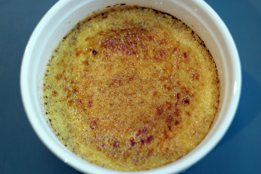 After a dish like budae jjigae, I thought something sweet was in order for dessert, so the night before I had baked cardamom-and-cinnamon custards. After dinner I topped one with sugar and torched it for a chai-style creme brulee. I would normally make my custards for creme brulee with half milk and half heavy cream, but in the interest of cutting a few calories, I did all milk. The spices added enough of a warm, deep flavor, though, that I didn’t miss the cream.