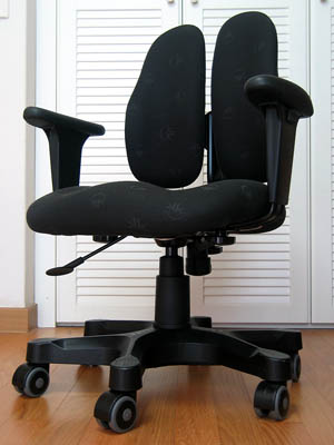 This is a Duoback chair, so named because the back of the chair consists of two separate pieces. It is a big step up from my former, single-backed chair. I really like this chair. To get the obvious out of the way, the divided back takes a bit of getting used to, but it is quite nice. I’m sure there is some ergonomic theory behind it, but all I know is that is makes it nearly impossible to slouch in the chair. My old chair was a slouching chair, and I used to sink lower and lower as the day went on. By evening I was usually supine. I guess my wife decided that I should have a good chair, since I sit at this desk all day, so she ordered the Duoback. I’ve only had it for a week or so, and my posture has improved already.