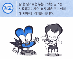 Babelfish: “Warning: The knife back the tool which has a sharp portion rolls up does not use. It gives a fatal wound to chair damage or the human body.”