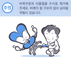Babelfish: “Attention: To remove the foreign material quality of wheel portion at any time. The wheel will not roll well and not to be there is a danger which will fall.”