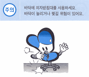 I’m pretty sure “chair support” refers to a floor mat to be placed beneath the chair. Most Korean floors are covered with a linoleum-type covering, and it would be possible to rip it if you dragged something sharp across it. The chair’s wheels are very smooth, though, and I can’t imagine them ripping anything, but I guess you have to cover all your bases (and if you’re warning users not to stab themselves with knives, I guess you have to warn them not to tear their floors, too).