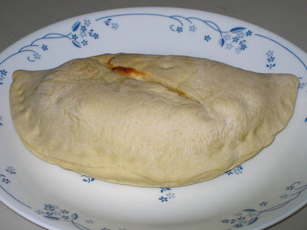 And now for the most important part: the photos. Here is a calzone uncut on the plate so you can see the lovely shape unspoiled.