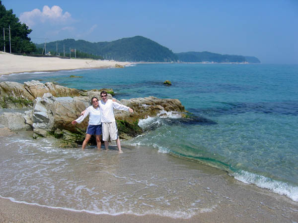 There is some beautiful scenery on Korea’s east coast. The west coast has a lot of tidal flats, which can be interesting in their own right, but the east coast has beautiful rocky shorelines and clear blue waters. We stopped at a number of beaches along the way, but the beach that made the biggest impression on me was one that was not on the map. It was a long, thin strip of sand with some seaweed-covered rocks at the southern end, and I immediately decided that it was the most beautiful beach I had ever seen in Korea.