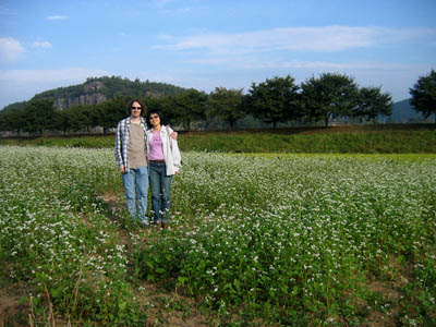 The second tripod photo, this time in a field of buckwheat in bloom, again with the cliffs in the background, although much further away now.