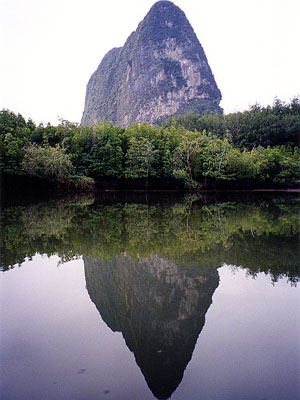 The waterways were very still in the morning, and like glass they reflected the mountains that rose above the jungle. This one in particular caught my eye.