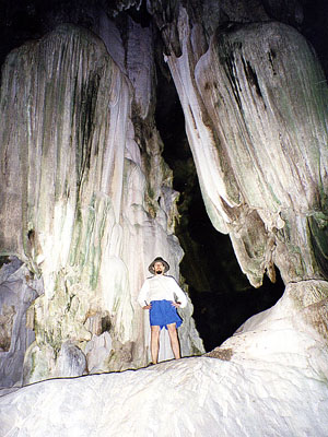 Our first actual stop was at Naga Cave, a rather large cave with some really amazing rock formations and a great view of the jungle. Hyun-jin took this picture of me standing at the entrance to the cave, doing my best Indiana Jones impression (just ignore the bright blue swimming trunks).
