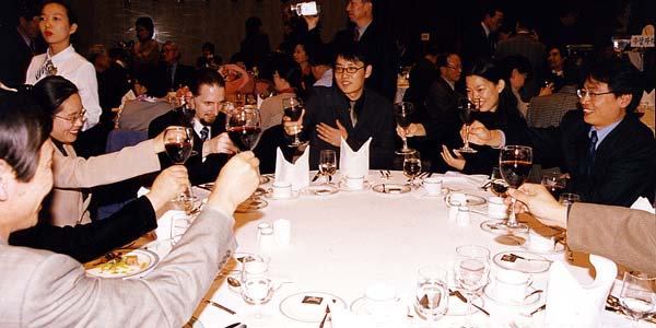 As a side note, ten years ago drinking wine in Korea was not nearly as widespread as it is now. Today, drinking wine is seen as an “classy” activity, while soju (cheap, traditional Korean booze) is struggling to cast off its lower-class image. I know that might seem like an odd comment here, but it just struck me as amusing to see everyone lifting glasses of wine for a toast.