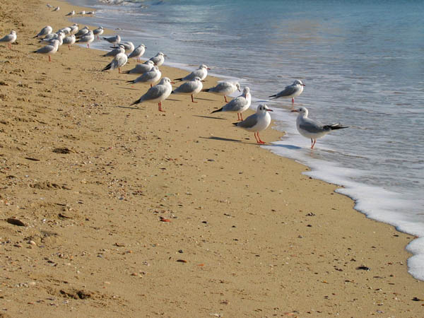 And thus begin the seagull photos. There were probably as many seagulls on the beach as people, if not more, and I ran around taking photos of them. I like this one because all the seagulls are looking out at the ocean (or maybe they’re looking at the sun?) except for that one guy, who appears to be having a conversation with the other gull.