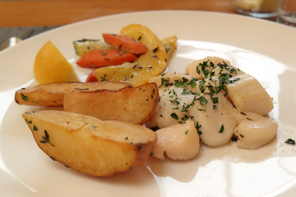 On our way to Yarmouth, we stopped off in Brewster for lunch. Our destination was a place I had found online while we were planning the trip back in Korea: the Brewster Fish House. It looked so good that we just had to give it a shot. What you see here are the Baked Cape Scallops (my father also had these, I believe), and they were delicious. The food was so good that we would end up coming back for dinner the next day.