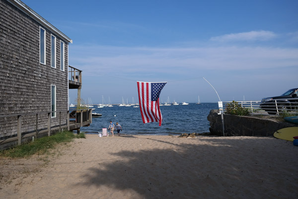 Commercial Street is a stone’s throw from the water, and at several points there are paths down to the beach. This path struck me as particularly patriotic.