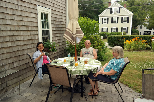 We returned to the Blushing Oyster late, and soon enough it was time for our last breakfast and an end to our trip. This is the table where we had eaten the first breakfast, but I wanted to get a wider shot to show you the yard as well.