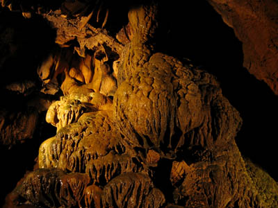 This is a good example of the bulbous canopies that characterize the first part of Ondal Cave. The top of this canopy is very uneven and irregular. It looks like a number of smaller canopies melded together. Either that or rivulets of water continued to flow across the canopy, digging thin channels in the rock.