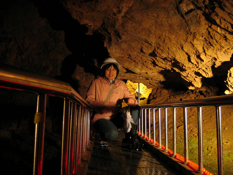 None of the other people who were in the cave with us elected to go into the back. Some of them gave up before even reaching the crawl, thinking the cave ended, while others turned back upon seeing the crawl. Obviously we weren’t going to be daunted by a little crawl. In fact, it was fun. It felt for a moment like we were real cavers. Well, except for the metal walkway and railings.