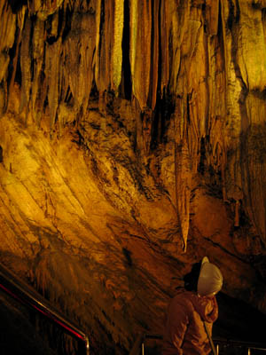 Hyunjin examines the formation in the previous photo. Boy, that stalactite sure does look tasty.