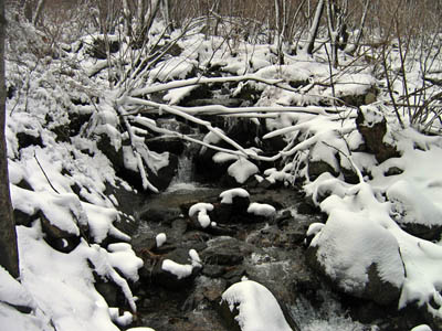 I stopped to take a photo of this snow-covered stream. The water isn’t frozen, but you can see there is significantly more snow on the ground than before. Yet I still thought of it as romantic.