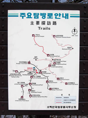 I realize that this is a bit anticlimactic, but that little red “You are here” dot shows us at the end of a two-kilometer stretch, over half of which was pure, snowy hell. The trail would have been difficult to navigate normally with its smooth, slippery rocks, but hidden under twenty centimeters of snow? I’m amazed we made it without breaking our ankles. And of course the snow just continued to get deeper. At one point, near the end of this hellish stretch, we were trudging through half a meter or so of drifts. In April. I was very glad we had brought warm clothing.