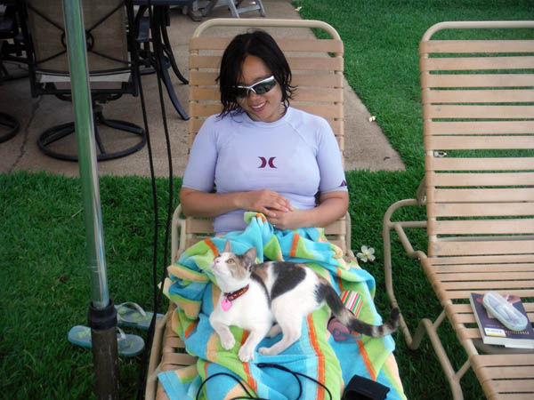 The condo managers owned cats, and this one—Coconut—was very friendly and seemed to feel right at home with the guests.