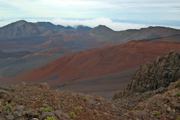 Here we are at the summit (or very near it), looking out to the east, where we would be looking if we were here for the sunrise. It is a fascinating landscape—still rather barren and alien-feeling, but quite colorful and beautiful.