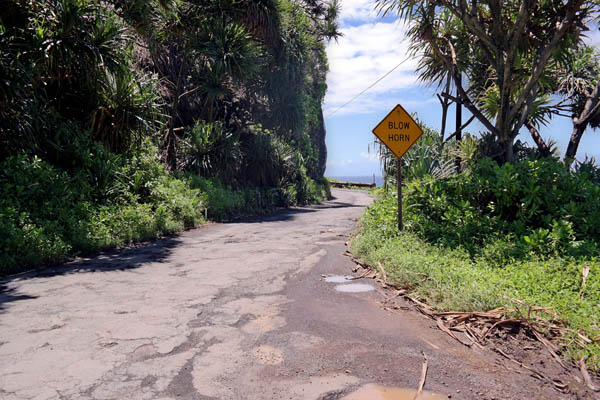 The road was very narrow at times, with some very tight (and blind) turns. We often saw signs like this one, and I obliged by laying on the horn, just in case someone was coming the other way. (It may look like we’ve pulled off the side of the road here, but we’re actually on the road itself, and this was taken through the windscreen—you can see a little glare in the upper center if you look close.)