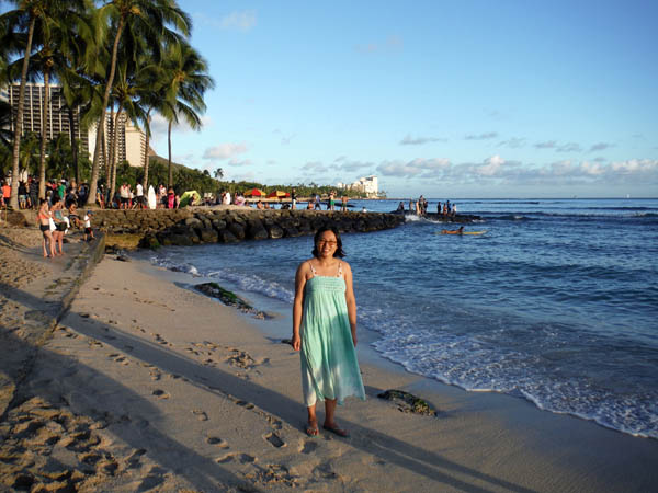 The first thing we did after arriving at our hotel (which took quite a while, as the shuttle from the airport had to fight through a lot of traffic) and dropping off our luggage was to get changed and head out to the beach. So this is the famous Waikiki. Not bad, but I’d probably like it better if there wasn’t a big stonking city sitting right next to it.
