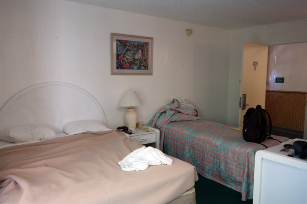 Oddly enough, our room had two beds; we slept in the big one and used the smaller one as a shelf for our bags.