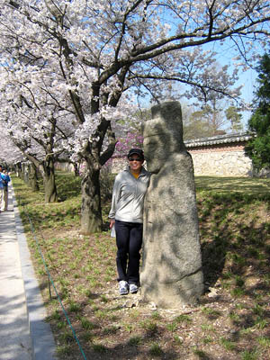 Here is Hyunjin with a civil official statue. These usually flank the tombs of important people, but, as you will see, there are many such statues scattered around the gardens.