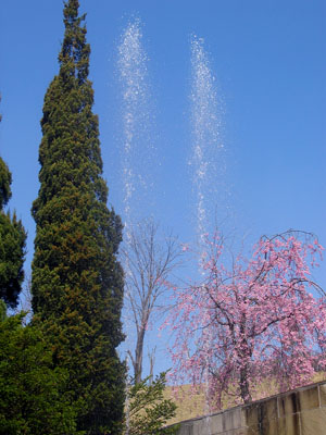 These two fountains shot water high into the air outside the Western statuary garden. I didn’t take any photos of the Western statues because, to be honest, they were rather unremarkable. I thought these fountains and the colorful background merited a shot, though.