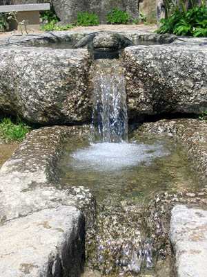 This turtle spits out a continuous stream of water that feeds the pond seen two photos ago. These artificial ponds are not completely stagnant, though they may look it. They always have an inlet, which is usually prominent and visible (and decorated in some way—the turtle, or terrapin, is a natural choice, since it is a water animal), and an outlet, which is usually not so visible.