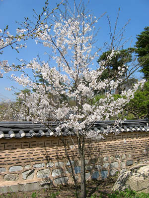 A simple shot here: a cherry tree against a recreation of a traditional wall.