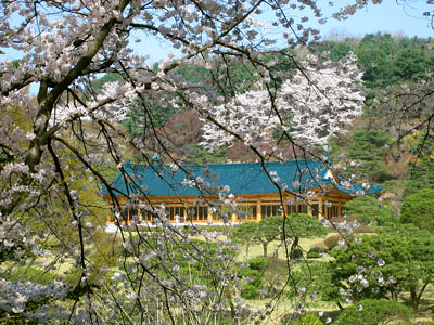 This is a building in the complex (I’m not sure which building, to be honest), seen from outside the wall and through some cherry trees.