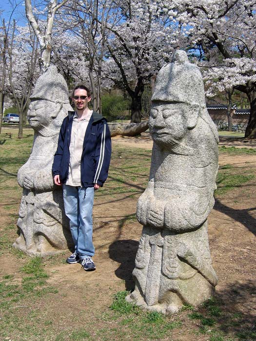 I wasn’t as enthusiastic about posing with statues (I’m not all that enthusiastic about posing at all), but here I am nonetheless. These two statues are military official statues, as you might be able to tell from their swords, scabbards, and helmets.