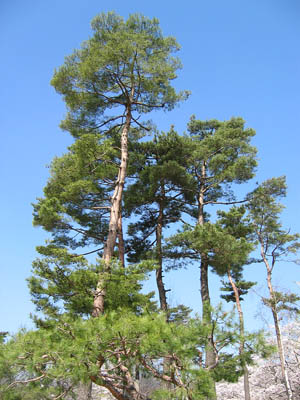 These pine trees towered near the statues in the previous photo. Pines don't grow as great in girth as some other trees, but they can climb pretty high. I wonder how old these trees are.