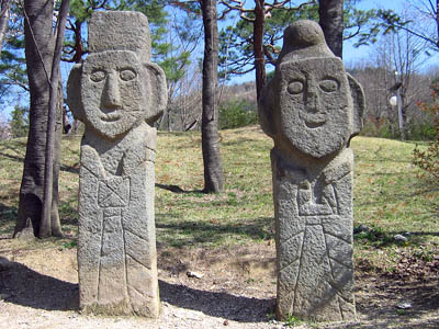 These are “child statues,” but what makes them interesting is that they are not done in the traditional style (exemplified by the previous statue photos) but in a style that mimics folk paintings. Thus they have a very playful—almost childish—atmosphere.