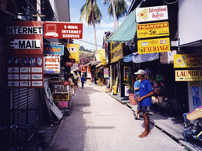 This is the main street of the island, running east and west across the handlebar that separates the northern and southern bays. It is also the only paved street on the island. All of the dive shops, internet cafes, and travel agencies, as well as a number of restaurants, are located on this street.