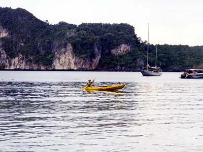 This is Hyun-jin paddling our sea kayak in the waters off Monkey Beach. There is a place (a man sitting under a parasol) that rents sea kayaks on the northern beach (Ao Lo Dalam) for what comes out to about 100 baht an hour (less than US $2.50), and we decided to take one out on our first day. It was a lot of fun, and good exercise.