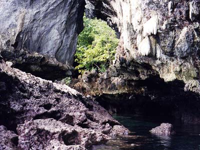 We paddled in closer to the cliffs in the previous picture and found that the cliffs hang over the water in this spot, making a miniature cave you can paddle (or swim) into.