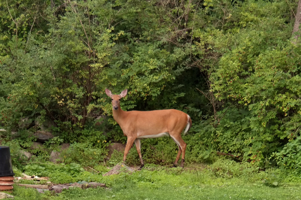 Credit for this photo goes to HJ. I don’t know where I was when this was taken, but she was out on the deck, saw the deer, and grabbed the camera to take this shot. It’s nice to see that, despite all the development that has been done in recent years behind my parents’ house, there are still deer wandering around.