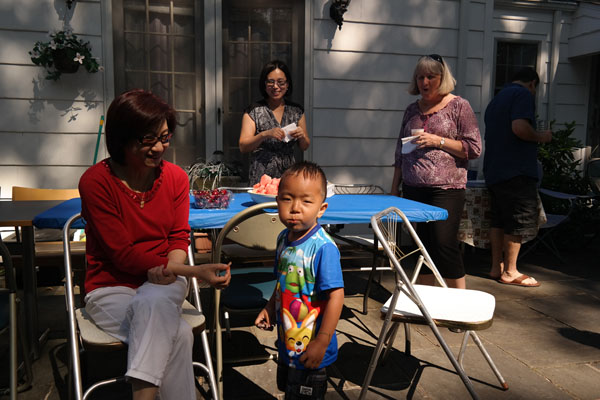 Front and center is Darius, the son of my friends Dave and Carmen; that’s his grandmother (Dave’s mom) to his right, with HJ and my mom in the background. Dave and Carmen had invited us down (more over than down, actually, as they live in Connecticut) for a barbecue with friends, and we had a great time. Carmen might as well be a Korean mom—I think there was enough food to feed a small army, including support personnel. (Oh, the shirt that Darius is wearing features characters from the popular Korean kid’s show, Pororo.)