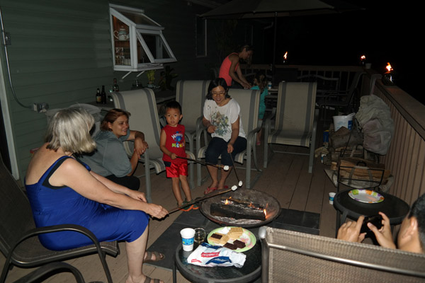 With a firepit, smores are inevitable. Once again, Darius steals the show; that’s Carmen on his right, and Dave is in the lower-right corner, taking his own photo. A friend of Carmen’s and her daughter—in the background—also joined us.