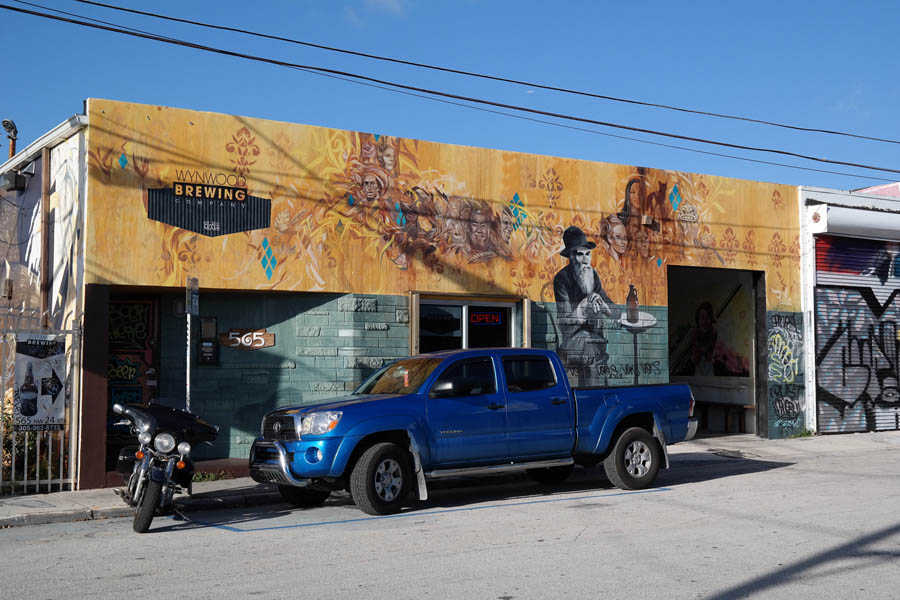 This is the Wynwood Brewing Company itself, decorated in the local fashion. I took this photograph right before heading in; it would be the last time I would see the sun that day.