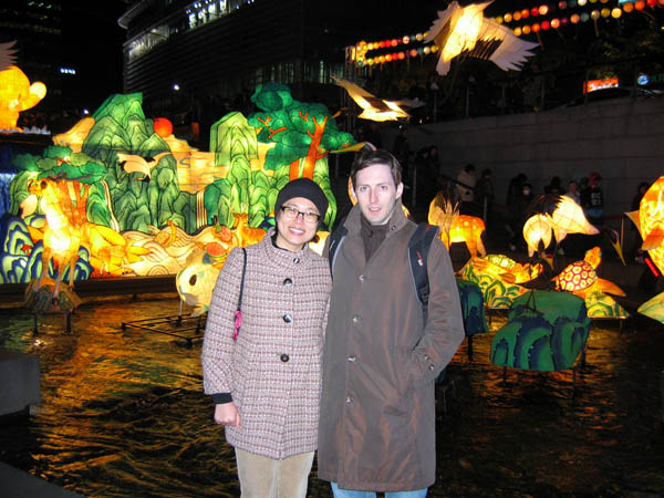 This set of lanterns stood at the very beginning of Cheonggyecheon, right after the waterfall. Depicted here are the ten symbols of longevity: the sun, mountains, water, clouds, stone, pine trees, turtles, cranes, deer, and a mythical plant supposed to grant eternal life.